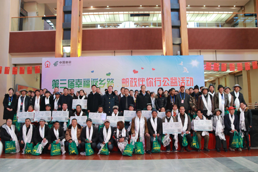 12月23日,中國郵政集團公司西藏自治區分公司與青藏鐵路公司拉薩站共同舉行第三屆“幸福返鄉路 郵政伴你行”免費贈送火車票公益活動,是深入貫徹落實黨的十九屆四中全會精神、全心全意為人民謀幸福的又一次具體舉措,也是西藏自治區各級黨委政府和社會各界關愛外來務工人群、致謝美麗西藏建設者的又一次具體體現,更是西藏郵政積極履行央企的政治擔當和社會責任,踐行“人民郵政為人民”服務宗旨的又一次具體行動。自2017年以來,西藏郵政已經連續3年開展了“幸福返鄉路·郵政伴你行”公益活動,廣大在藏務工人員熱烈響應、積極參與,多家媒體爭相宣傳報道,引起了良好的社會反響,達到了“替政府分憂,為百姓解愁”的目的。