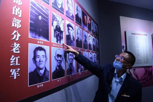 在臘子口戰(zhàn)役紀(jì)念館,向軍濤領(lǐng)著我們來(lái)到一面展墻,指著其中的兩張照片自豪地介紹:“這是我的奶奶高秀英,是一名光榮的紅軍戰(zhàn)士。”通過(guò)向軍濤的敘述,我們得知,向軍濤的奶奶高秀英于1932年帶著年幼的弟弟高步清一起參加了紅軍。從1932年到1936年,跟著紅四方面軍輾轉(zhuǎn)各地,從婦女獨(dú)立營(yíng)營(yíng)員到班長(zhǎng),一路走來(lái),經(jīng)歷了諸多苦難。后因交戰(zhàn)時(shí),右手的四個(gè)指頭被打斷,傷勢(shì)嚴(yán)重,無(wú)法繼續(xù)前行,而散落在臘子口至茨日那一帶。