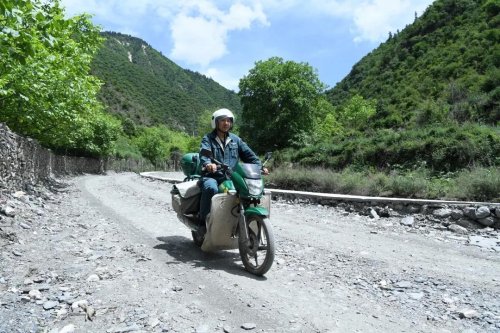 楊九才,迭部縣郵政分公司代古寺郵政所所長(zhǎng),一個(gè)壯實(shí)、憨厚的康巴漢子。他從事郵政工作至今已23年,一直負(fù)責(zé)臘子口戰(zhàn)役紀(jì)念地紅色旅游景點(diǎn)、水泊溝林場(chǎng)、洛大鄉(xiāng)、臘子鄉(xiāng)、桑壩鄉(xiāng)政府及周邊鄰近村民的郵政服務(wù)工作。這些年里,他累計(jì)投送了400多萬(wàn)份報(bào)刊、20萬(wàn)件其他類(lèi)型的郵件,騎壞了4輛自行車(chē)、3輛摩托車(chē),上百萬(wàn)公里的山路,腳下的鞋已經(jīng)不知道換了多少雙了。