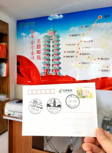 近年來,甘肅白銀市和會(huì)寧縣努力打造紅色文化,當(dāng)?shù)剜]政成立了會(huì)寧會(huì)師主題郵局,開發(fā)了會(huì)師主題郵品,通過郵品宣傳、傳承會(huì)師精神。一位騎行到會(huì)寧的騎友特意來到主題郵局,在會(huì)寧會(huì)師明信片上蓋上郵戳,并將明信片投入郵筒?!霸诿餍牌仙w上郵戳,才算是真正到會(huì)寧打卡過,看見明信片就會(huì)想起紅軍會(huì)寧會(huì)師這段歷史。”