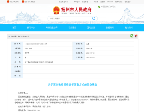 發布《關于更改教師資格證書