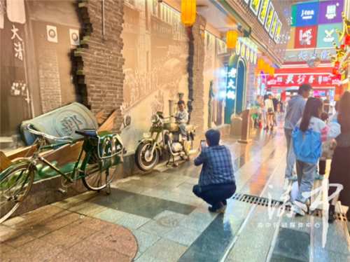 成都游客陸鳴就選擇在10月5日的下午來到這里,用感受人文氣息的方式結束“重慶游”?!半m然來過渝中多次,但重慶督郵街還是第一次來。這次也是看到有博主介紹,慕名而來。”他陪著孩子一路拍照,從督郵街口的郵政文物——“老牌”郵筒拍到不同時期的送信交通工具,此時的他變身一位“郵遞員”,或陪著孩子坐在扁擔上、抱著孩子坐在自行車上自拍,或讓孩子獨自坐在摩托車上為他拍,一路了解重慶郵政業的發展,也從重慶郵政業的發展中感受著這座城市的發展。“這條街很有意思,既有市井氣,又有知識學,讓我們看到了蘊含在重慶小巷里的人文歷史。”