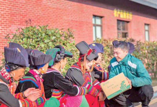 郵政小哥將包裹送到彝族同胞手中。 □吳敏 攝