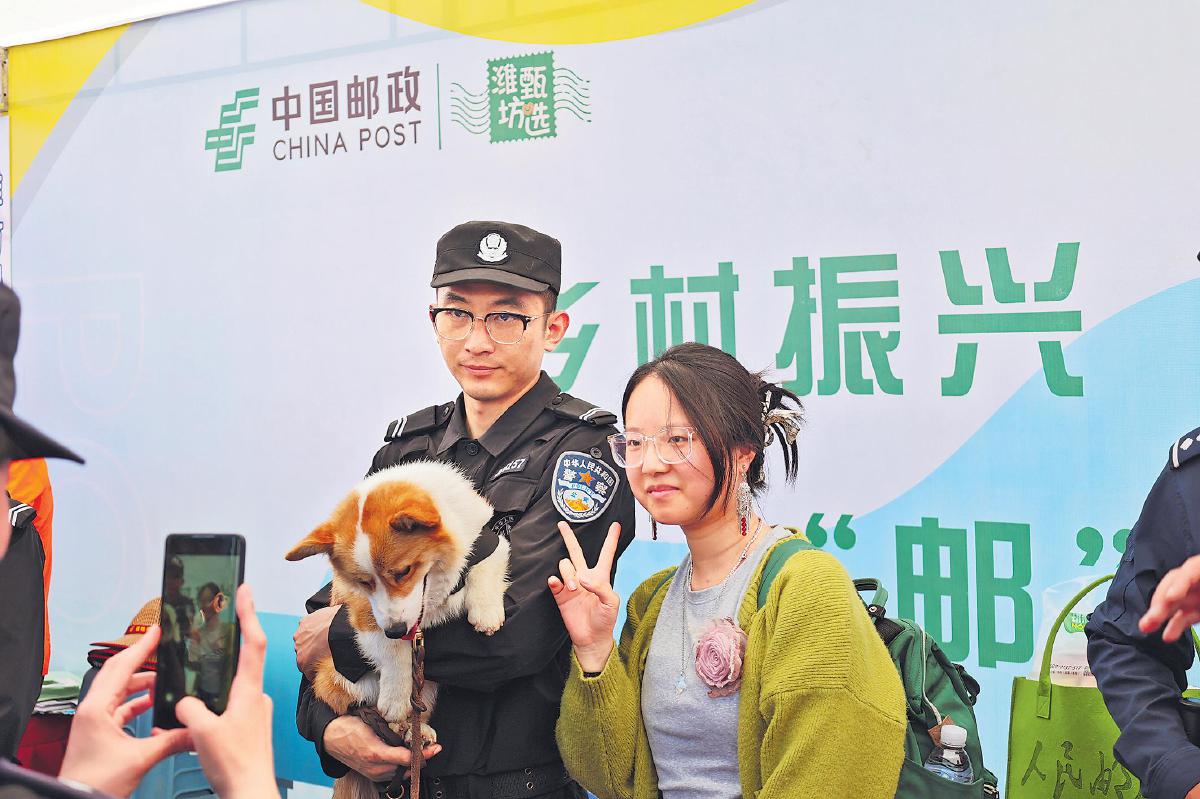 4月20日,全網流量過億的柯基警犬福仔,在執行巡邏任務的間隙來到濰坊風箏郵局參加“巡回粉絲見面會”,與粉絲親密互動。