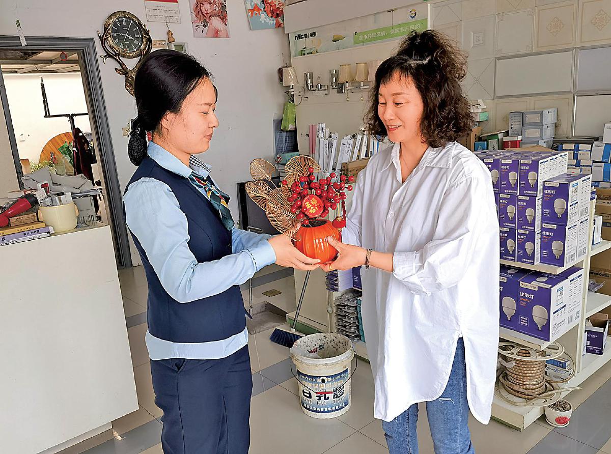 八嶺山支局專管員對(duì)商戶開展節(jié)日拜訪。 □王曼 攝