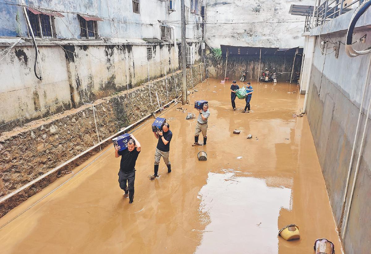 在廣東省梅州市,郵政員工在確保自身安全的前提下積極組織轉移郵件、文件和重要物資。□鐘萍萍 攝