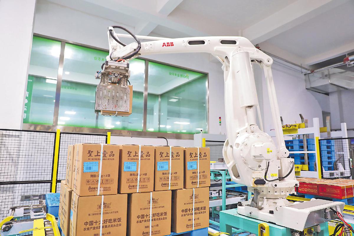 聽說郵儲銀行的人前來調(diào)研,本來臨時要出差的五常市金禾米業(yè)有限責任公司董事長李云輝將出行時間硬是推遲1小時,只為能見上一面。當看到金禾米業(yè)生產(chǎn)線上兩臺“ABB”數(shù)控機器臂正在精準分揀包裝好的盒裝高端稻米產(chǎn)品時,記者不禁感嘆:“普通的大米居然能做得如此高科技!”