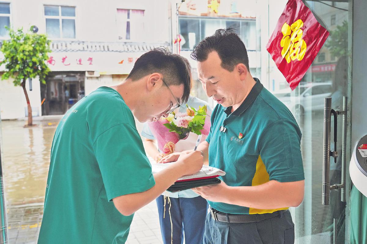 “您好!請問是楊同學(xué)嗎?您的北京大學(xué)錄取通知書到了……”日前,河南省商丘市郵政分公司攬投員喬金濤冒著暴雨將錄取通知書送到家住周集鎮(zhèn)周集村的考生楊同學(xué)的手中,這也是商丘市首封北京大學(xué)錄取通知書。7月15日以來,商丘市連降暴雨,部分路段積水嚴(yán)重。為確保錄取通知書能夠第一時(shí)間送到考生手中,商丘市郵政分公司采用專人專投方式,冒雨投遞。在實(shí)際投遞過程中及時(shí)調(diào)整投遞路線,盡可能減少因暴雨而增加的投遞時(shí)間。