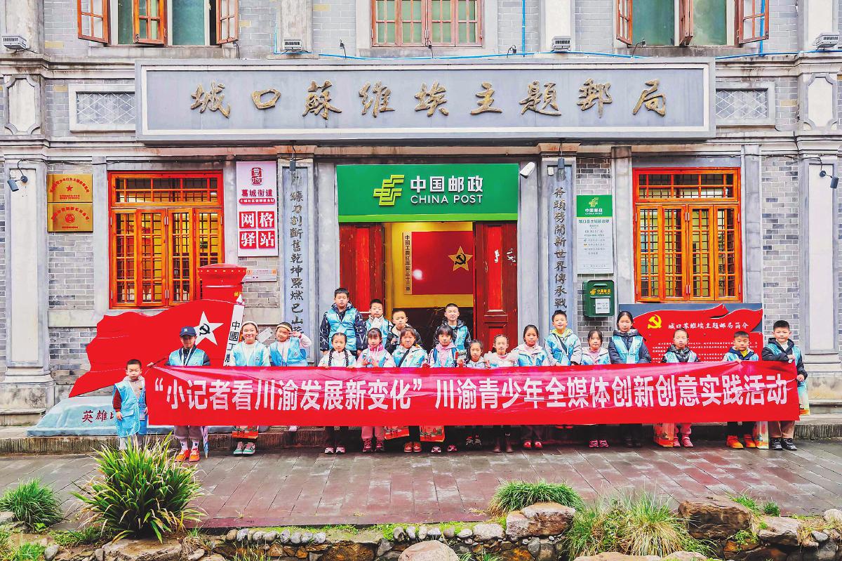 11月23日,“小記者看川渝發展新變化”川渝青少年全媒體創新創意實踐活動走進重慶市城口縣青少年紅色教育基地——城口蘇維埃主題郵局。在主題郵局,郵政員工向小記者們講解了郵政發展史,帶領小記者們參觀了展廳內老式自行車、磁石式電話,感受有聲圖書等智能終端設備帶來的現代化郵政服務體驗。